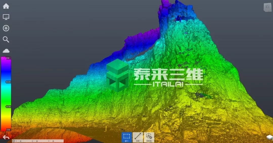 利用三维激光扫描技术能高效率、准确的采集到实际山体外貌外形,对进一步研究山体构造、规划设计、山体修复提供真实的基础数据。