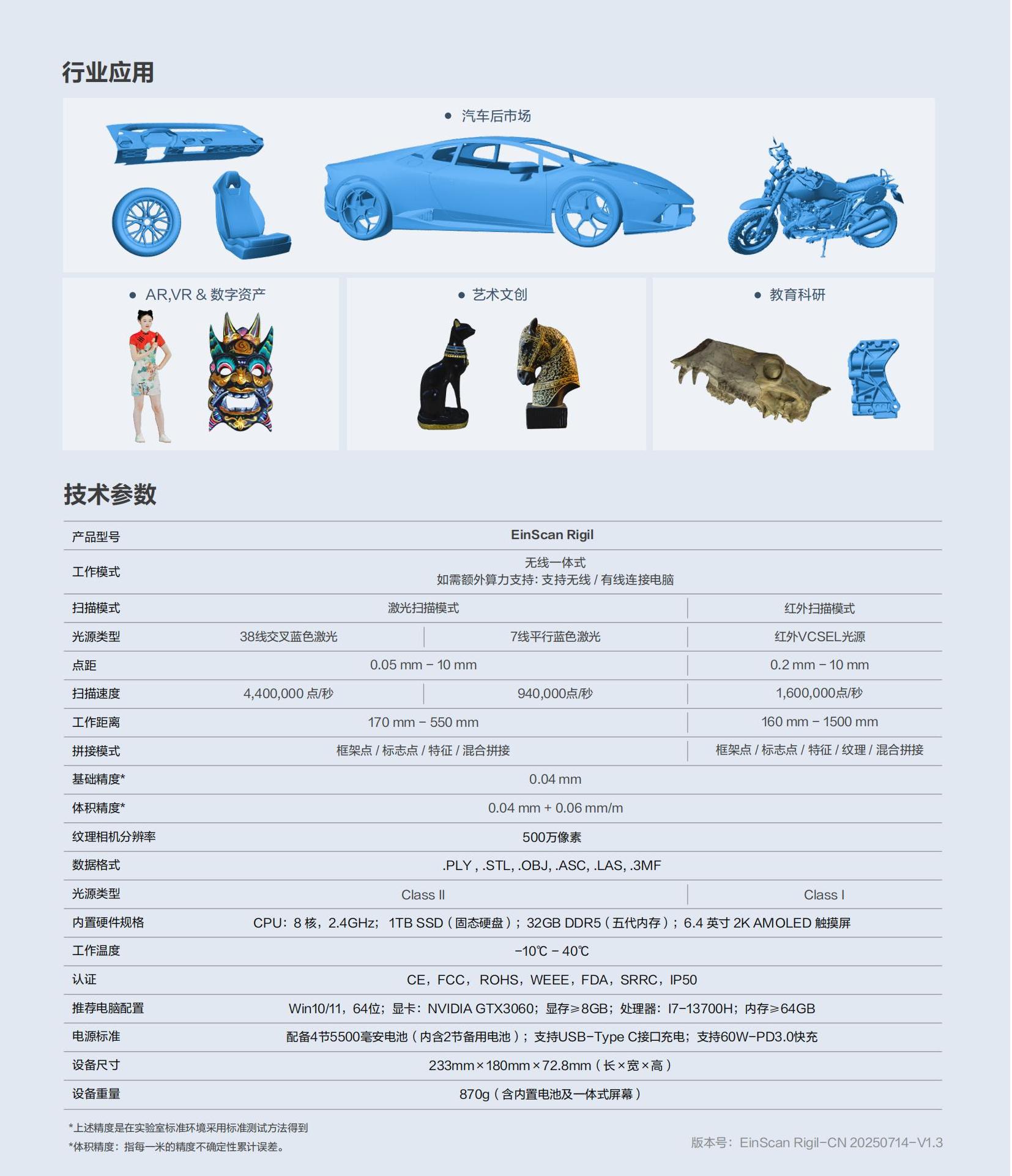 型号:EinScan Rigil