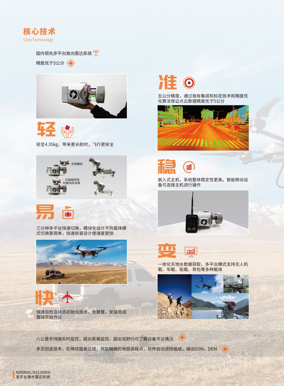 品牌:华测 型号:AS-900HL/1300HL 产品简介:AS-900HL/1300HL是经过多年的探索,软硬件研发人员不断改良的一套多平台激光雷达系统。可以实现在飞行载体和车辆载体上使用,采集海量点云数据和高清影像数据。快速便捷的安装和切换模式,实现数据存储无缝对接,让作业更高效,为客户带来更多价值。